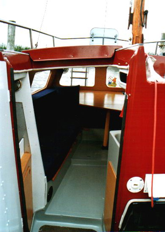 - Achterkajüte mit Klapptisch. Schlafmöglichkeit für maximal 4 Personen auf ca 2 x 2 Metern (z.B. für Familie mit 2 kleinen Kindern)